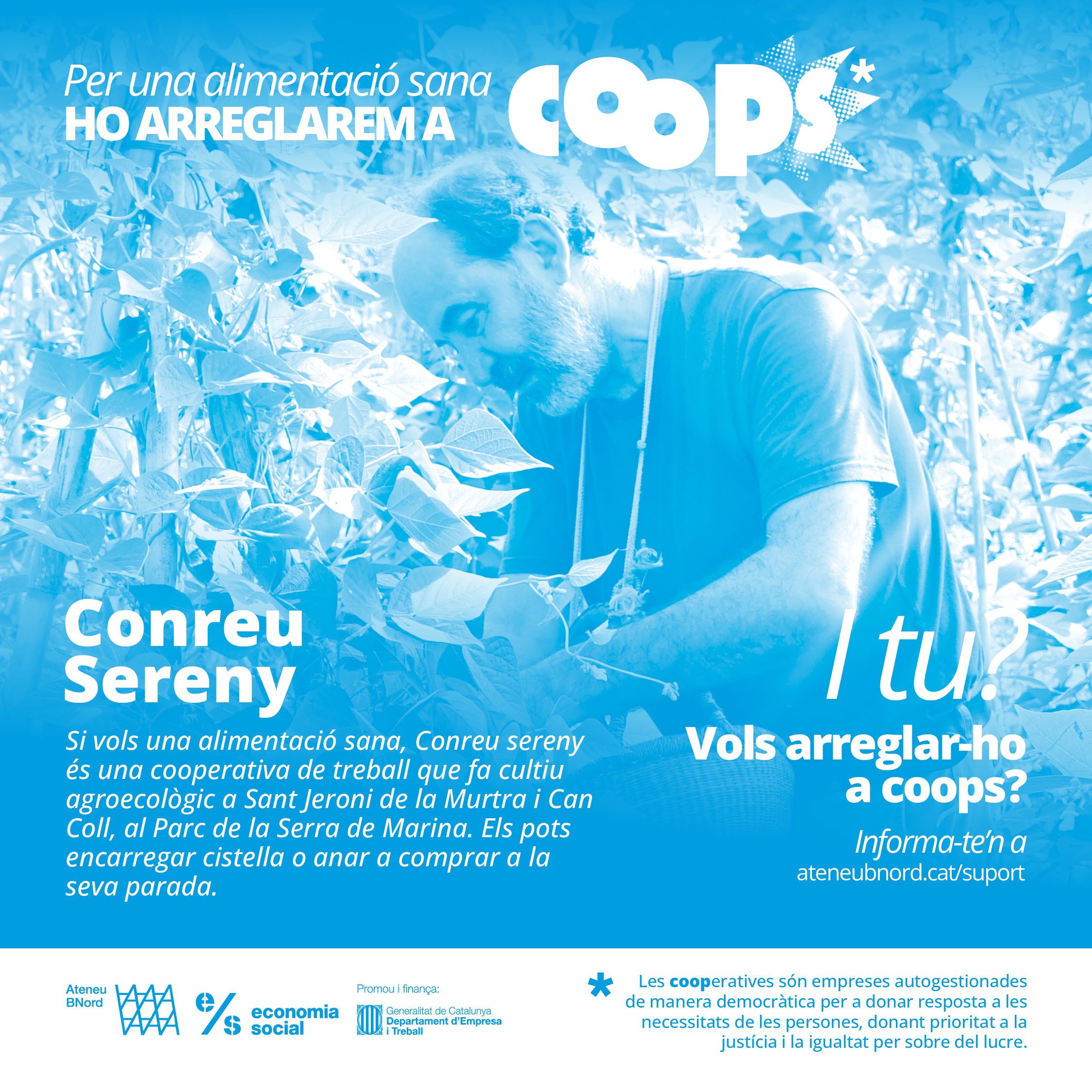 Conreu sereny és una cooperativa de treball que fa cultiu agroecològic a Sant Jeroni de la Murtra i Can Coll, al Parc de la Serra de Marina. Els pots encarregar cistella o anar a comprar a la seva parada. També és impulsora de l’Ateneu cooperatiu del Barcelonès nord.