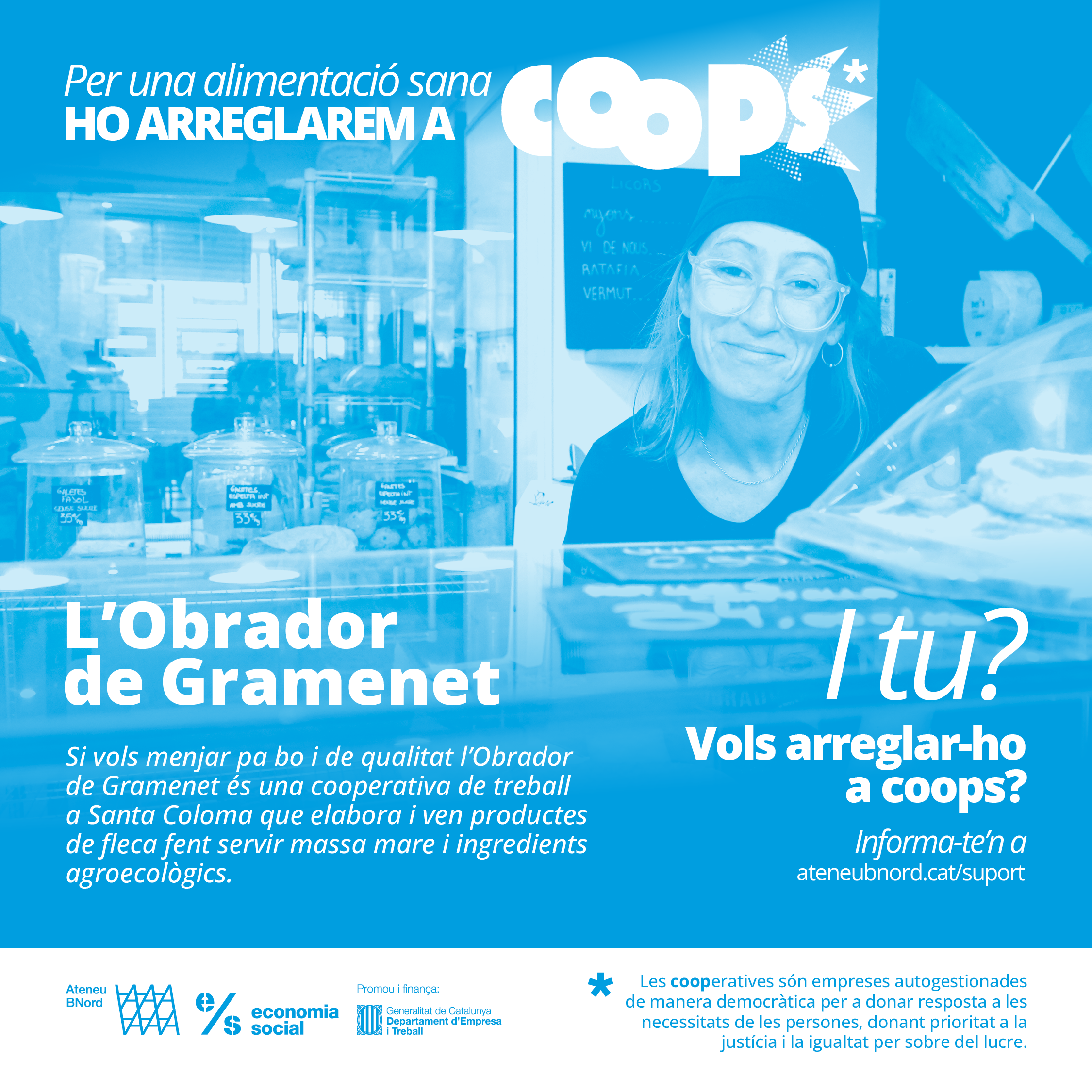 l’Obrador de Gramenet és una cooperativa de treball a Santa Coloma que elabora i ven productes de fleca fent servir massa mare i ingredients agroecològics. Forma part de l’ecosistema cooperatiu Santakoopera.