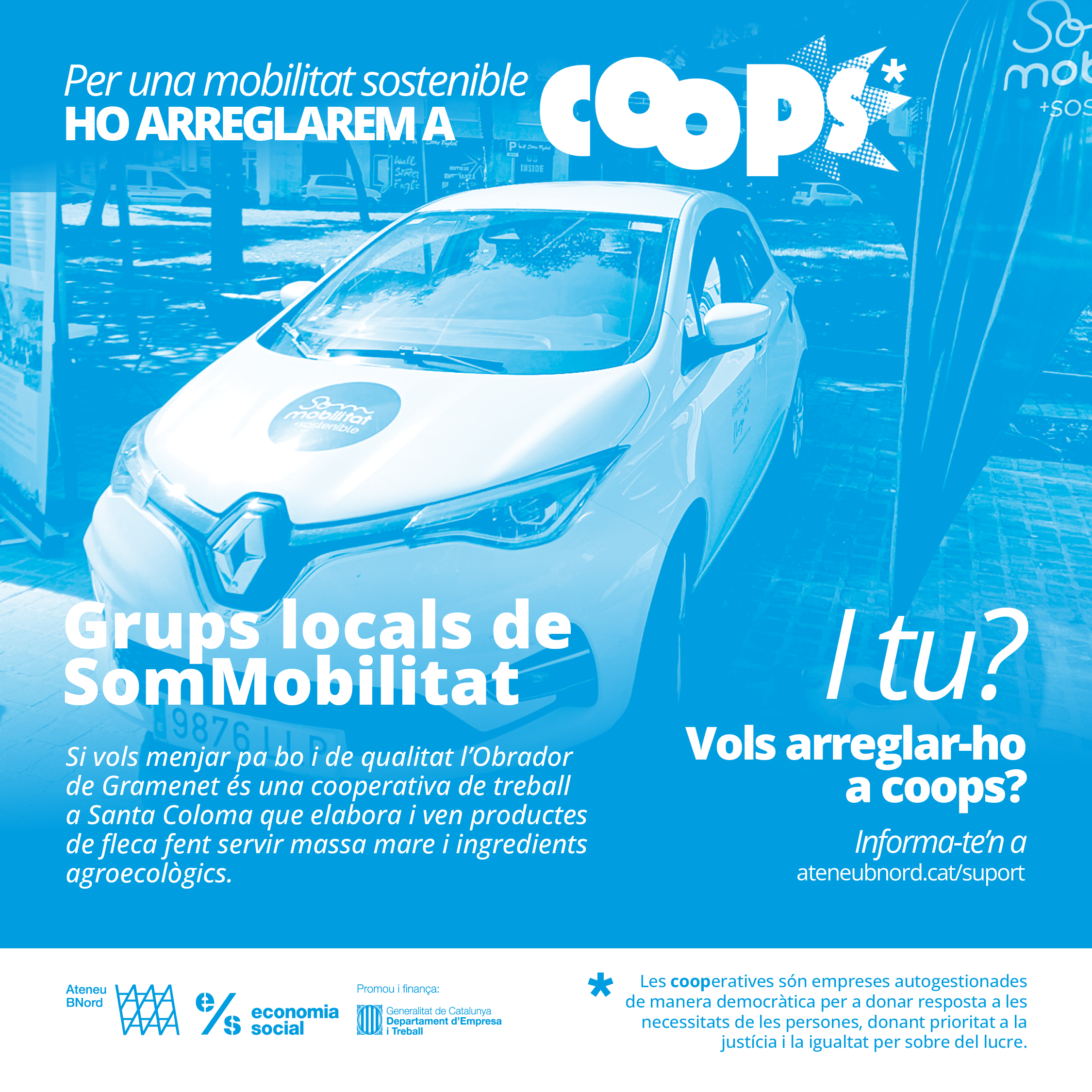 Som Mobilitat és una cooperativa de consum que facilita a les persones sòcies l’ús d’una flota compartida de vehicles elèctrics per tot Catalunya. Té cotxes disponibles i grups locals de persones sòcies a Badalona i Santa Coloma de Gramenet.