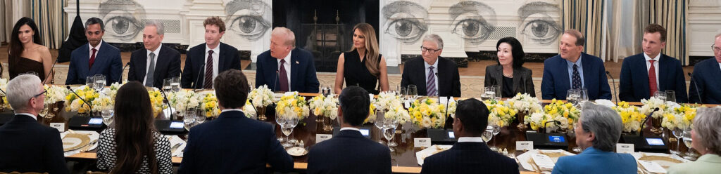 La majoria d’ells van patrocinar la campanya electoral de Donald Trump i el 20 de gener d’aquest any estaven a la seva investidura com a president. Els hem tornat a veure junts amb Trump en el dinar de líders de les BigTech que van fer el 5 de setembre a la Casa Blanca sota el propòsit de consolidar l’hegemonia americana en el control de les anomenades intel·ligències artificials.