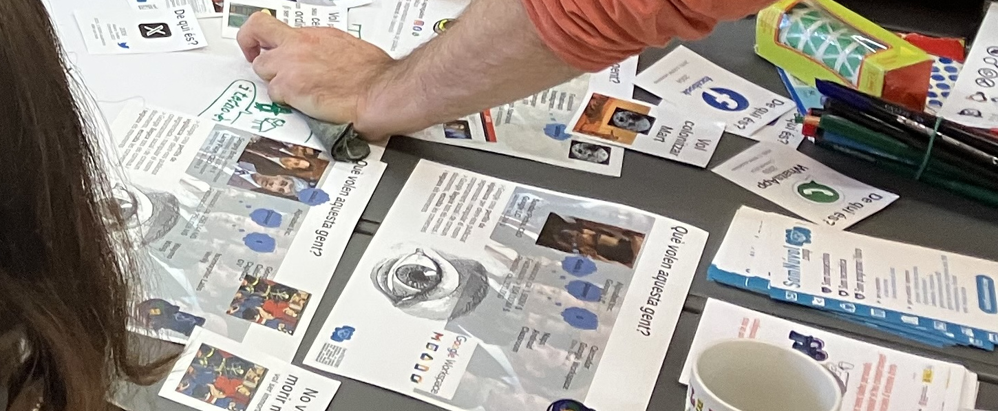 Procés final de paginació amb la pliegOS-Maker, plegat i tallat central per a distribuir els «funzines» entre participants